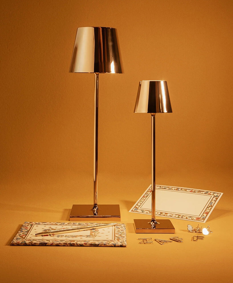 Zafferano Poldina Pro micro lampa bateryjna/lampka stołowa, złoty połysk