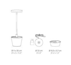 Lampka stołowa jest łatwa do przenoszenia i dzięki klasie IP54 może być używana zarówno wewnątrz, jak i na zewnątrz. Lampę można przyciemniać za pomocą funkcji dotykowej na spodzie klosza, aby dostosować światło do pożądanej atmosfery. Temperaturę barwową 2200K, 2700K lub 3000K wybiera się również za pomocą funkcji dotykowej, a pamięć zapamiętuje ustawienia.