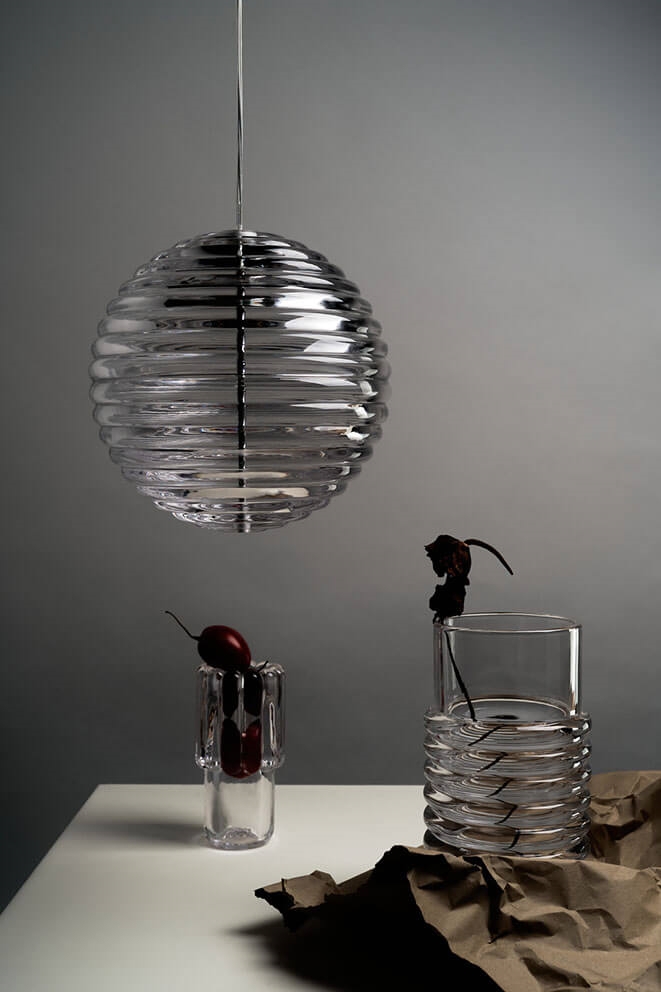 Press pendel sphere jest wykonany z grubego prasowanego szkła i zaprojektowany, aby przetrwać wieczność. Żebrowane szkło łamie i rozprasza światło w liniowe i paskowane wzory, co sprawia, że pendel jest eleganckim dodatkiem do wnętrza. Zawieś na przykład pendel samodzielnie lub w grupie nad stołem jadalnym lub stołem kuchennym.