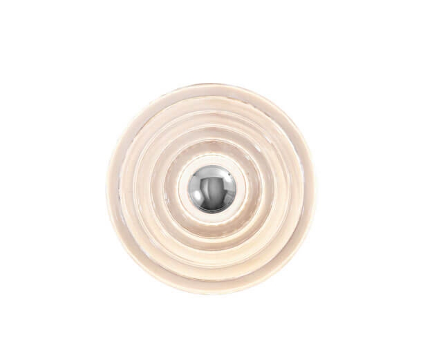 Kinkiet Press Surface mini jest wykonany z grubego prasowanego szkła i dzięki klasie IP55 może być używany zarówno wewnątrz, jak i na zewnątrz. Press jest zaprojektowany, aby trwać wiecznie i łamie oraz rozprasza światło w liniowe i paskowane wzory dzięki żebrowanemu szkłu klosza. Metalowa kopuła na kinkiecie Press może być wymieniana, a w zestawie znajdują się kopuły w kolorze srebrnym, złotym i czarnym.