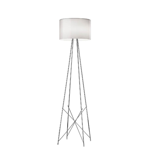 Klasyczna i elegancka lampa podłogowa z krzyżującymi się nogami w chromie i cylindrycznym kloszem z kilku warstw szkła. Oznacza to, że światło delikatnie prześwituje oraz wychodzi na górze, gdzie jest otwarta. Lampa dostępna w kilku kolorach. Idealnie pasuje do każdego wnętrza i domu dzięki swojemu bardzo prostemu wyglądowi. Daje przyjemne oświetlenie, które doskonale sprawdza się w salonie, przedpokoju lub sypialni.
