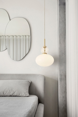 Nuura Rizzatto 32 pendel, satin brass/opal – zaprojektowany przez Paolo Rizzatto.