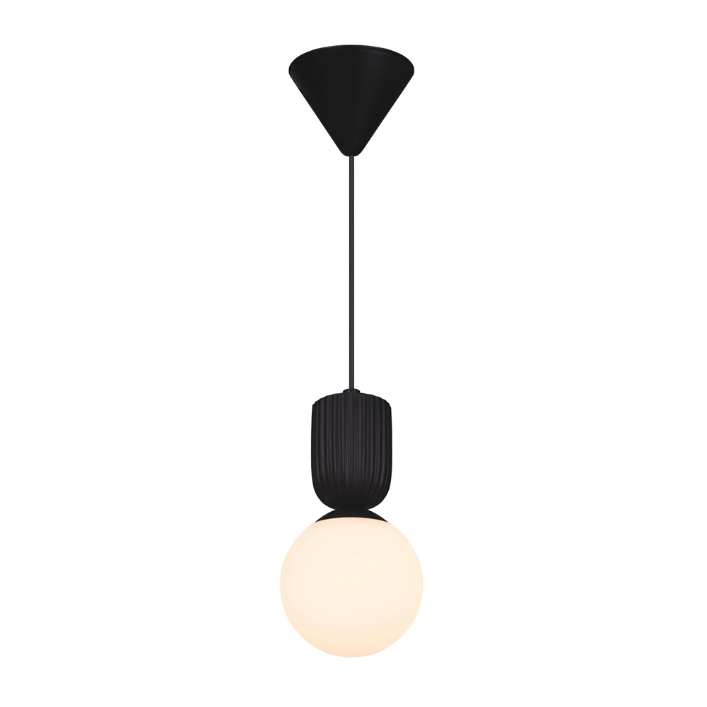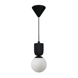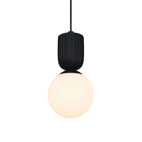 Lampa wisząca Sadie ma elegancki wygląd z połączeniem opalowego szkła i żłobionej ceramiki. Lampa dostarcza przyjemne i nieoślepiające światło z dmuchanej ręcznie kopuły z opalowego szkła, która zyskuje charakter i żywy wygląd dzięki ręcznemu wykonaniu i może różnić się w wyrazie i grubości.