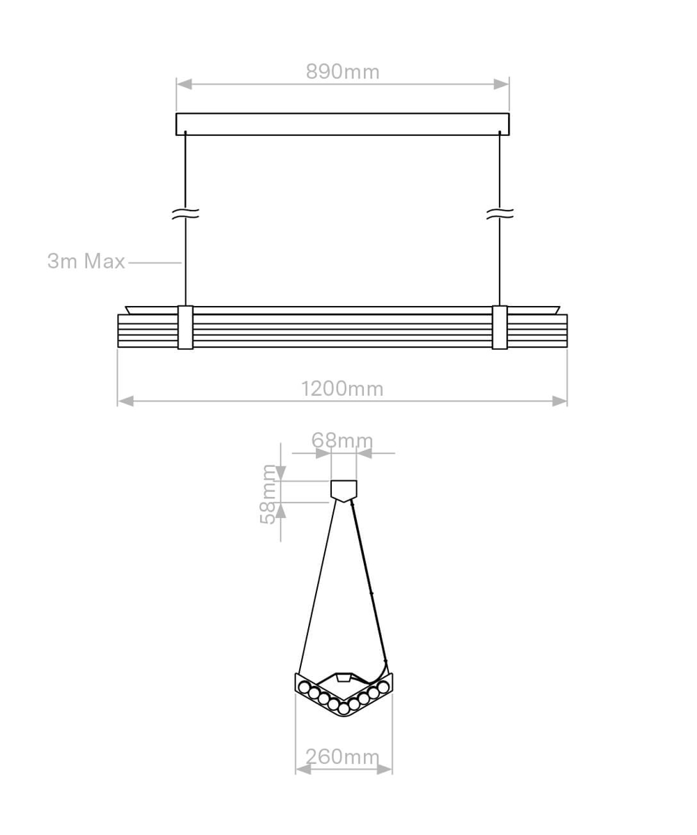 Maksymalna wysokość od sufitu: 3 m