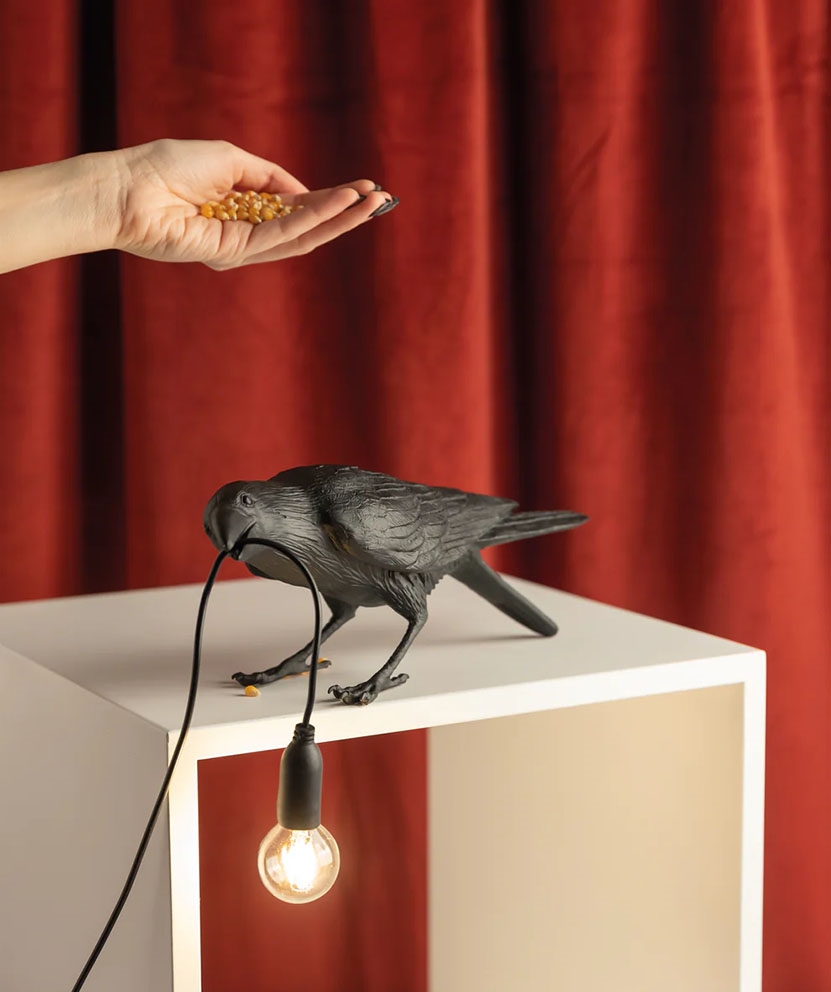 Seletti Bird Playing lampa stołowa, czarna - zaprojektowana przez Marcantonio