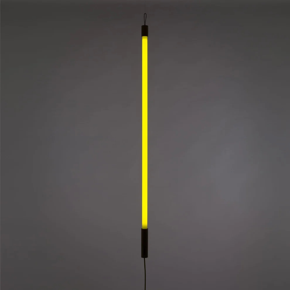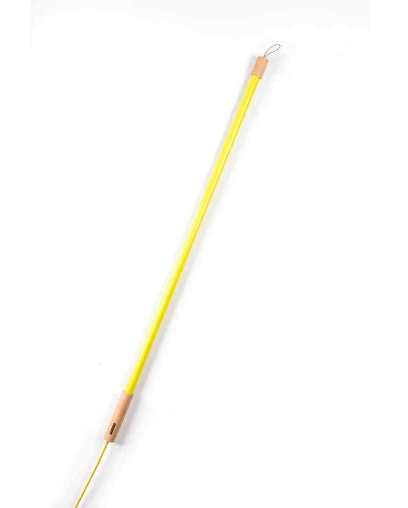 Świetlówka Linea od Seletti przecina mrok i jest dostępna w kilku pięknych kolorach. Długość lampy jest jasno określona, a jej osobowość jest nieskończona. Może być używana jako lampa wisząca i kinkiet lub jako lampa podłogowa leżąca na podłodze albo stojąca pionowo w drewnianej podstawie Seletti zaprojektowanej do tego celu. Drewnianą podstawę należy dokupić osobno.