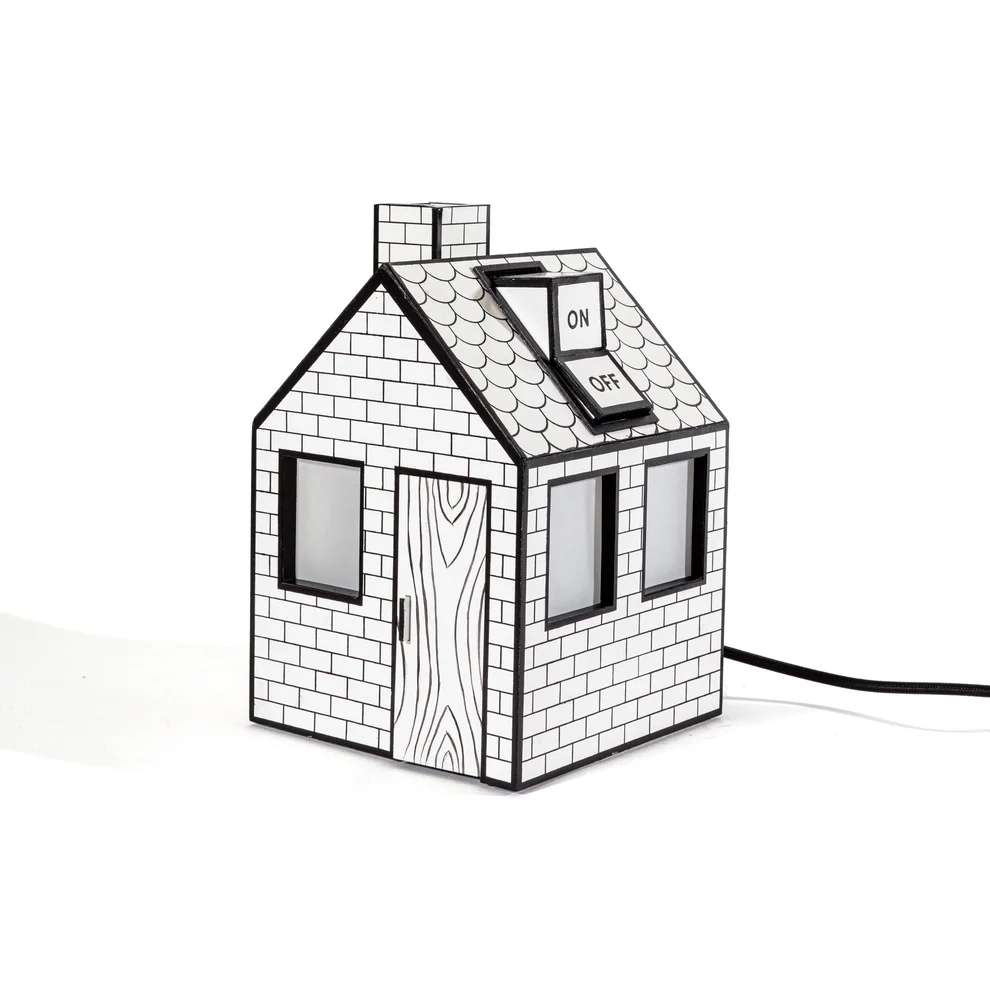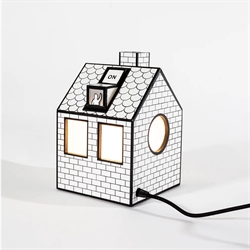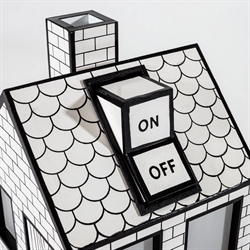 Uroczy i przyjazny dla środowiska sposób na rozświetlenie Twojego domu. Lampa stołowa On-Off jest wykonana z papieru z recyklingu, który został pocięty, złożony i sklejony w komiksowy domek. Światło wydobywa się przez okna i drzwi, tworząc w pomieszczeniu przytulną i ciepłą atmosferę.