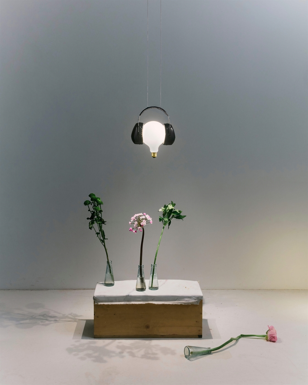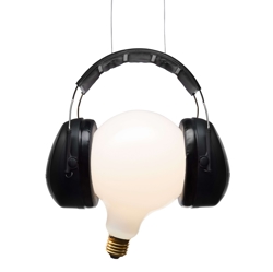 Na pierwszy rzut oka Shhh! wygląda jak klasyczna żarówka otoczona dużymi słuchawkami, gdzie światło szuka chwili spokoju z dala od hałasu świata. Zaskoczenie tkwi w szczegółach: źródła światła ukryte są w słuchawkach, skąd światło miękko i rozproszono rozchodzi się przez szkło, tworząc ciepłą, przytulną poświatę. Dwa zintegrowane reflektory w dolnej części słuchawek dostarczają skupione światło skierowane w dół, idealne do podkreślenia powierzchni takich jak stoły, miejsca pracy czy dzieła sztuki.