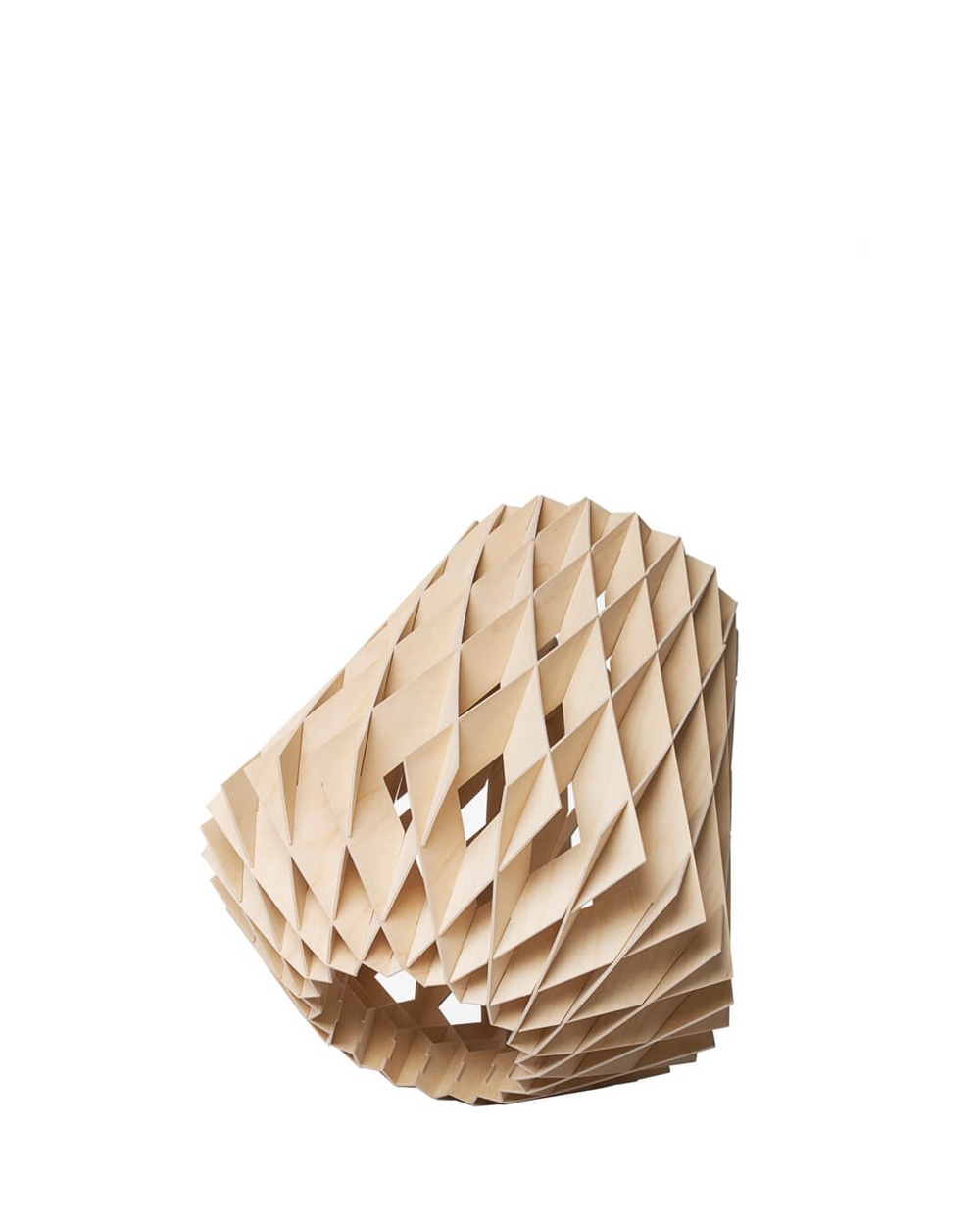 Ta unikalna lampa stołowa może stać pionowo lub być pochylona na stole, pasując do wielu miejsc w aranżacji wnętrz. Lampa składa się z abażuru z certyfikowanej sklejki brzozowej, który jest ręcznie wykonany. Listwy brzozowe tworzą ciepło, gdy światło przez nie prześwituje, i są złożone bez użycia śrub czy kleju. Dodatkowo, lampa ma stylowy i geometryczny design, który przyciąga wzrok w każdym pomieszczeniu
