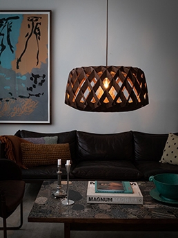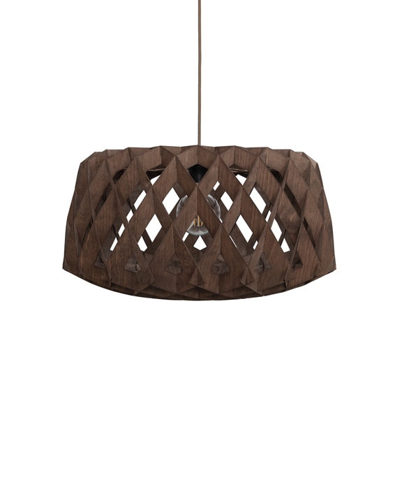 Pendellampa dzięki swojemu dużemu kształtowi wypełnia przestrzeń i pasuje zarówno do prywatnych, jak i publicznych wnętrz. Lampa wykonana jest z naturalnego i zrównoważonego drewna, ręcznie robionego w Finlandii. Drewno tworzy ciepło, gdy światło przez nie prześwieca, a całość jest złożona bez użycia śrub czy kleju. Dodatkowo, lampa ma stylowy i geometryczny design, który przyciąga wzrok w każdym pomieszczeniu.