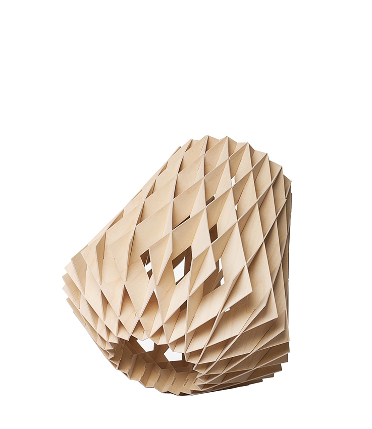 Lampa podłogowa dzięki swojemu dużemu kształtowi wypełnia przestrzeń, tworząc piękny efekt. Lampa wykonana jest z certyfikowanej sklejki brzozowej, która jest ręcznie robiona. Listwy brzozowe tworzą ciepło, gdy światło przez nie prześwieca, i są złożone bez użycia śrub czy kleju. Dodatkowo lampa ma stylowy i geometryczny design, który przyciąga wzrok w każdym pomieszczeniu.