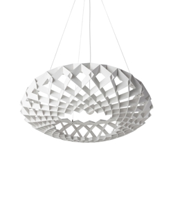 Lampa wisząca dzięki swojemu dużemu kształtowi wypełnia przestrzeń i pasuje zarówno do prywatnych, jak i publicznych wnętrz. Lampa wykonana jest z certyfikowanej sklejki brzozowej, ręcznie robionej i montowanej bez użycia śrub czy kleju.