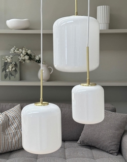 Silvia D15 lampa wisząca z dmuchanego opalowego szkła z zawieszeniem z mosiądzu łączy w sobie nowoczesny i klasyczny design. Klosz z błyszczącego opalowego szkła rozprasza światło we wszystkich kierunkach, zapewniając przyjemne oświetlenie. Lampa wisząca idealnie nadaje się nad stół kuchenny, jako lampa przy stoliku nocnym w sypialni lub samodzielnie bądź w grupie w salonie.