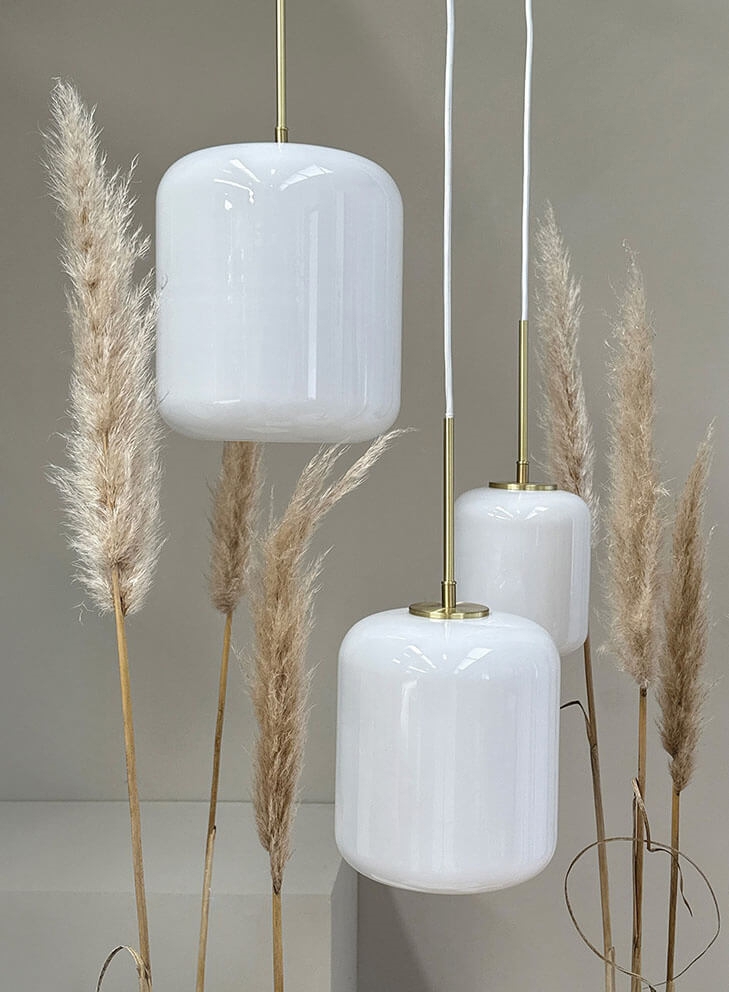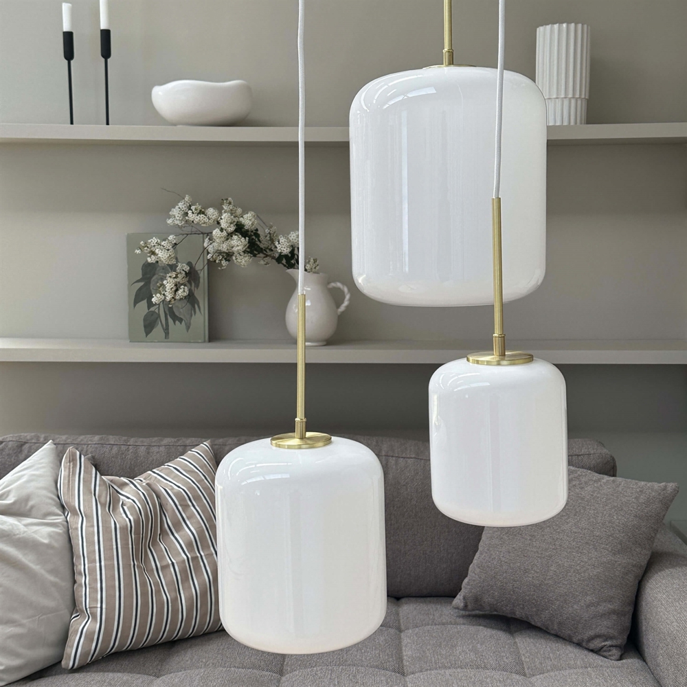 Silvia D20 lampa wisząca z dmuchanego opalowego szkła z zawieszeniem z mosiądzu łączy w sobie nowoczesny i klasyczny design. Klosz z błyszczącego opalowego szkła rozprasza światło we wszystkich kierunkach, zapewniając przyjemne oświetlenie. Lampa wisząca idealnie nadaje się nad stół kuchenny, jako lampa przy stoliku nocnym w sypialni lub samodzielnie bądź w grupie w salonie.