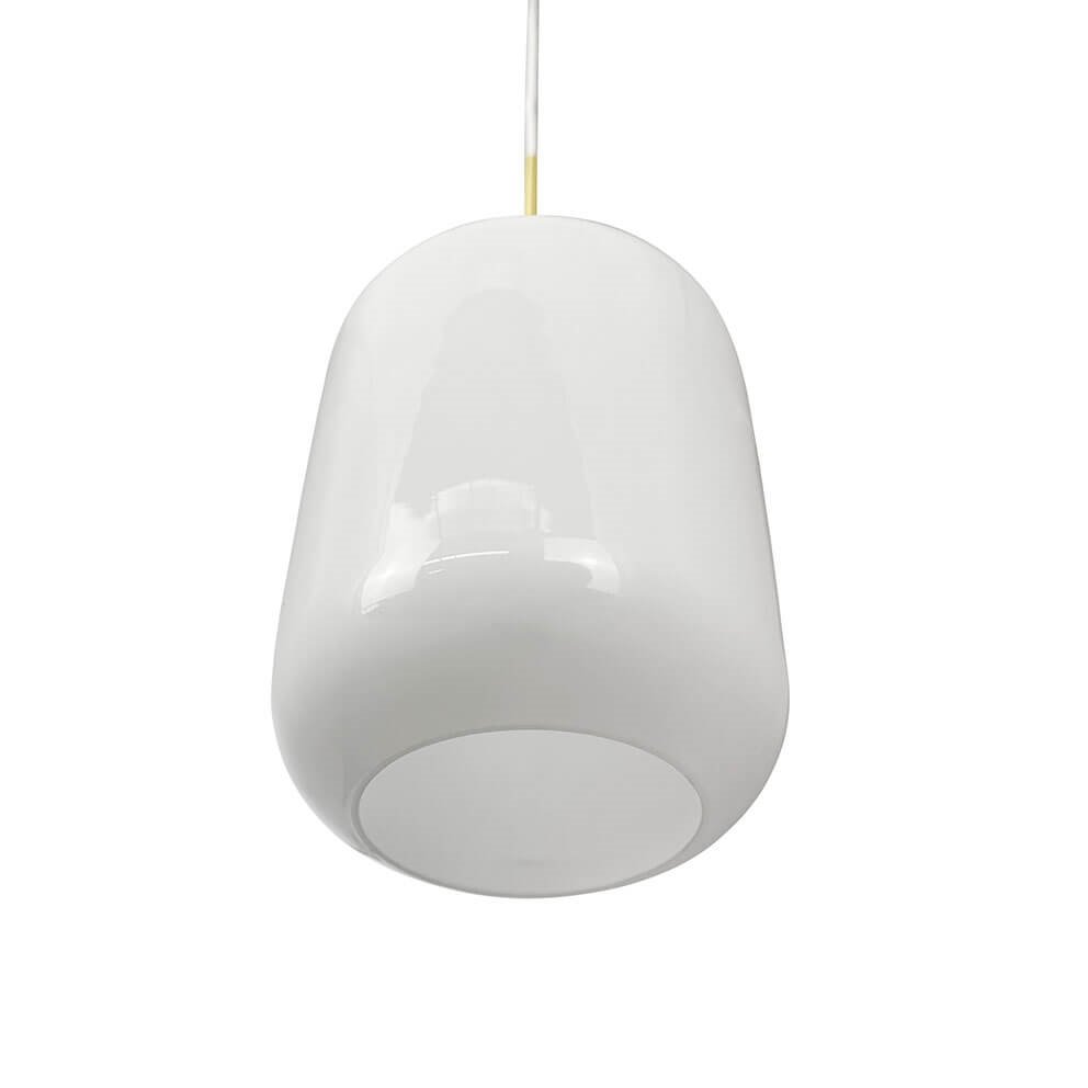 Silvia D25 lampa wisząca z dmuchanego opalowego szkła z zawieszeniem z mosiądzu łączy w sobie nowoczesny i klasyczny design. Klosz z błyszczącego opalowego szkła rozprasza światło we wszystkich kierunkach, zapewniając przyjemne oświetlenie. Lampa wisząca idealnie nadaje się nad stół jadalniany lub samodzielnie, lub w grupie w salonie.