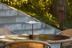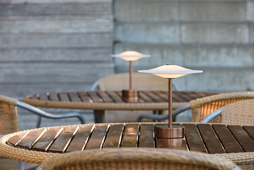 Przenośna lampa stołowa Sinus Portable może być używana zarówno wewnątrz, jak i na zewnątrz, idealna na stół jadalny, przytulne chwile w salonie lub letnie wieczory na tarasie. Jest ściemniana w trzech stopniach za pomocą funkcji dotykowej na górze i dostarcza miękkie i przyjemne światło bez olśnień. Przy pełnej mocy świeci lampa bateryjna do 10 godzin, przy jasności 40% do 24 godzin, a przy 10% do 86 godzin.