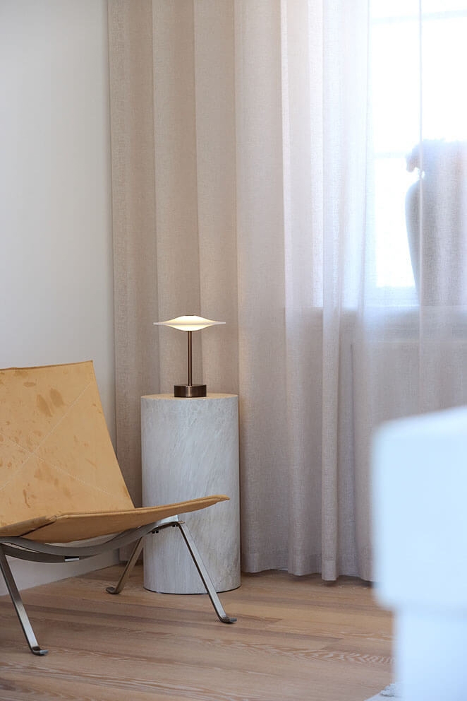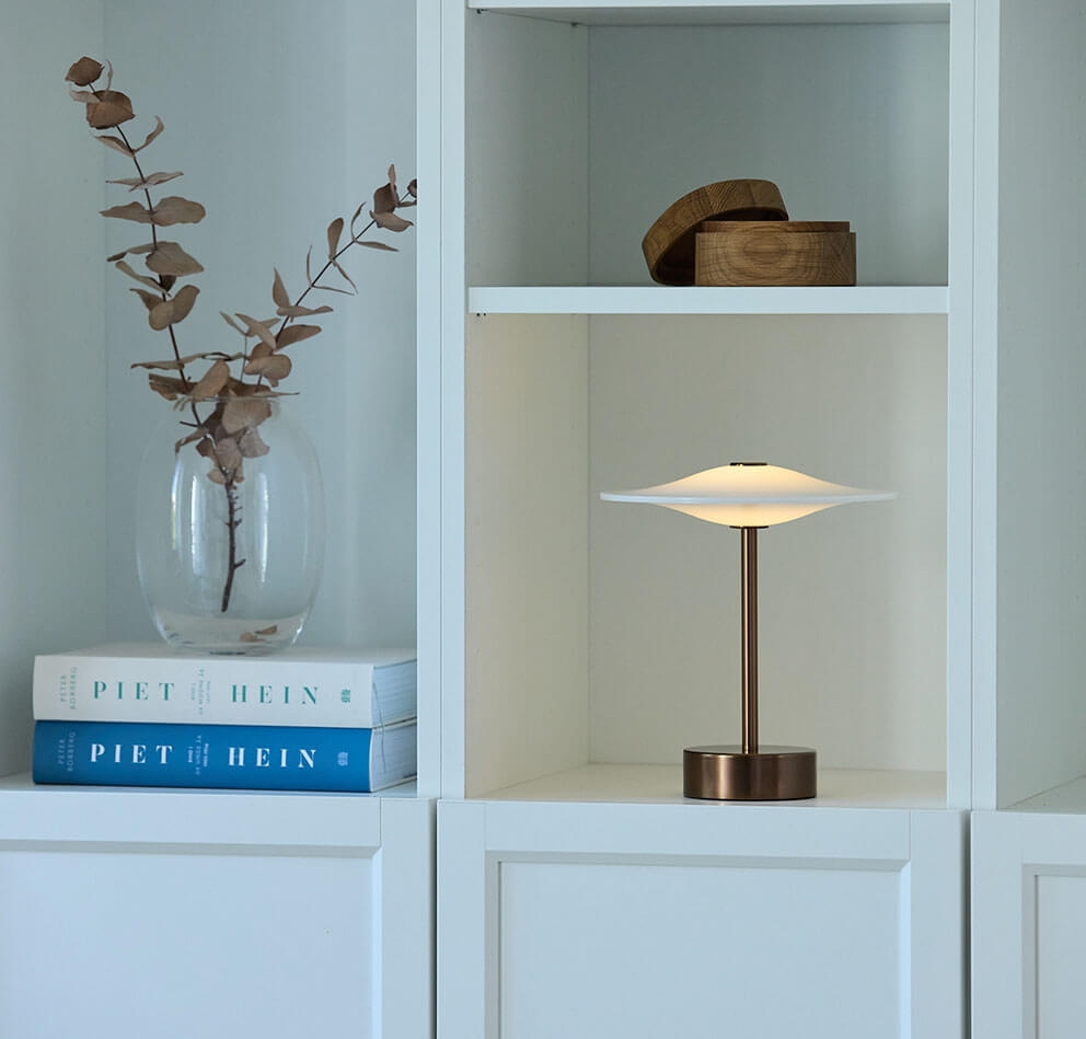 Seria lamp Sinus jest inspirowana krzywą sinusoidalną, która ma harmonijną formę matematyczną. Oryginalna lampa wisząca Sinus została stworzona w 1967 roku, a elegancki design jest uosobieniem znanego czystego skandynawskiego wyrazu z tego okresu. Dzięki lampie stołowej Sinus Portable z wykończeniem w brązie wprowadzonej w 2025 roku stworzono piękną ładowalną lampę stołową opartą na oryginalnym, wyrafinowanym designie.