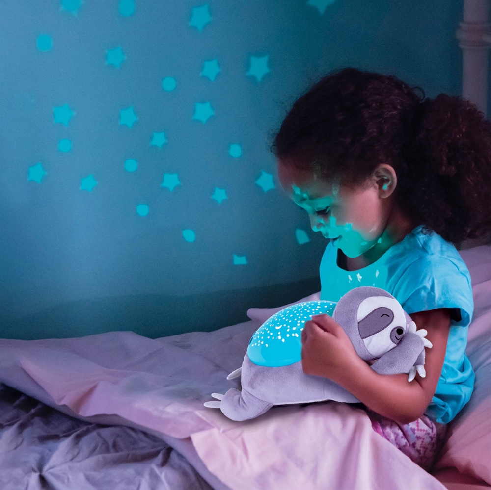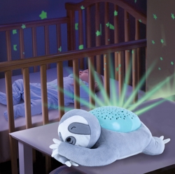 Ten uroczy mały leniwiec tworzy przytulną i bezpieczną atmosferę dla każdego dziecka. Leniwiec jest zawsze gotowy na drzemkę, pomagając dzieciom zasnąć. Może emitować spokojne i relaksujące światło w formie gwiaździstego nieba. Gwiaździste niebo można wyświetlić na ścianie lub suficie. Do wyboru są 3 różne kolory oraz rytmiczny pokaz świetlny lub indywidualne kolory.