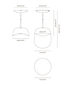 Lampa wisząca jest dostępna w dwóch rozmiarach. W serii znajduje się również lampa stołowa.
