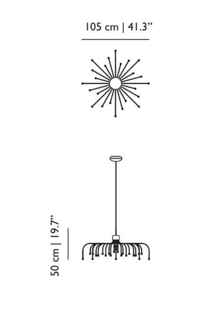 Lampa wykorzystuje 30 źródeł światła LED i wygląda jak odwrócony żyrandol, który wnosi do Twojego domu niekończący się deszcz gwiazd. Projekt jest elegancki: 30 smukłych ramion o różnej długości symbolizuje spadające gwiazdy – albo krystalicznie czyste nocne niebo usiane punktami światła na różnych wysokościach.