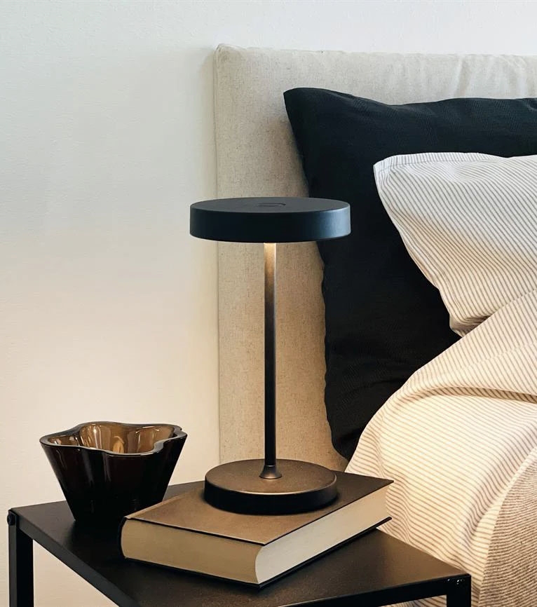 Lampa bateryjna Starlight ma zintegrowane źródło światła LED i jest ściemnialna w trzech poziomach jasności, dzięki czemu możesz dopasować oświetlenie do sytuacji. Ta przenośna lampa stołowa jest łatwa do zabrania ze sobą i świetnie sprawdzi się na stole jadalnianym i stoliku kawowym, a także na parapecie lub w regale. Minimalistyczny, elegancki i nowoczesny wygląd w połączeniu z wysoką funkcjonalnością sprawia, że lampa jest doskonałym wyborem do wielu aranżacji wnętrz.