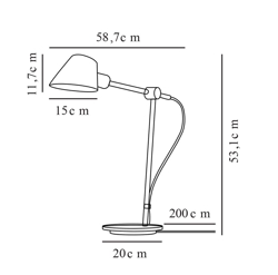 Wymiary: Wys. 53,1 x Dł. 58,7 cm, klosz: Ø15 x Wys. 11,7 cm, podstawa: Ø20 cm
