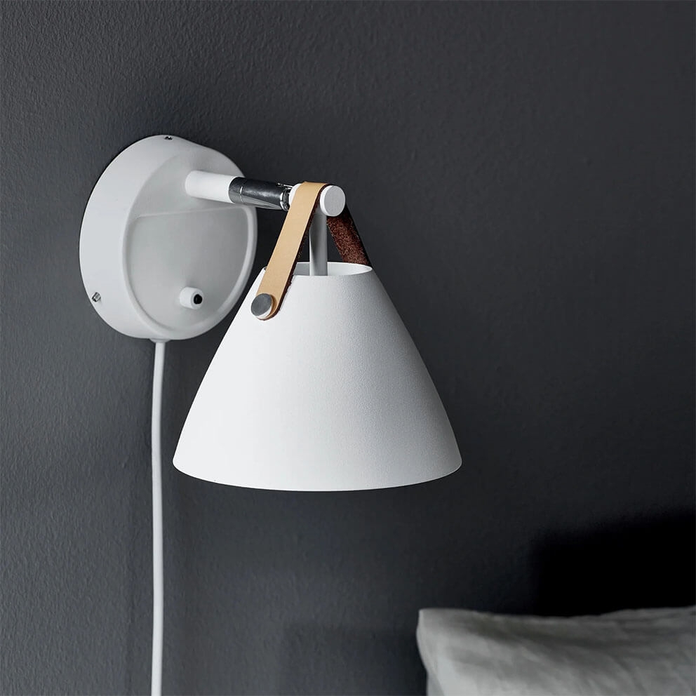 Kinkiet Strap łączy metal i skórę w nowoczesnym nordyckim stylu. Seria Strap zawdzięcza swoją nazwę charakterystycznym paskom, które dodają lampie ciepła i surowości. Projekt balansuje między klasycznym a industrialnym wyrazem.
