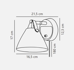 Kinkiet jest wyposażony w dwa paski ze skóry wysokiej jakości – jeden czarny i jeden w kolorze naturalnym – dzięki czemu możesz dostosować lampę do swoich potrzeb. Można ją przechylać o 90° i obracać o 350°.