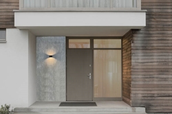 Projekt Sun Outdoor zapewnia, że światło pięknie rozprasza się zarówno w górę, jak i w dół ściany, tworząc dynamiczne doświadczenie oświetleniowe.