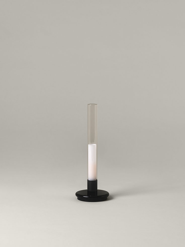 Santa & Cole Sylvestrina lampa bateryjna/lampka stołowa, czarny połysk – zaprojektowana przez Enrica Sòria i Jordiego Garcésa