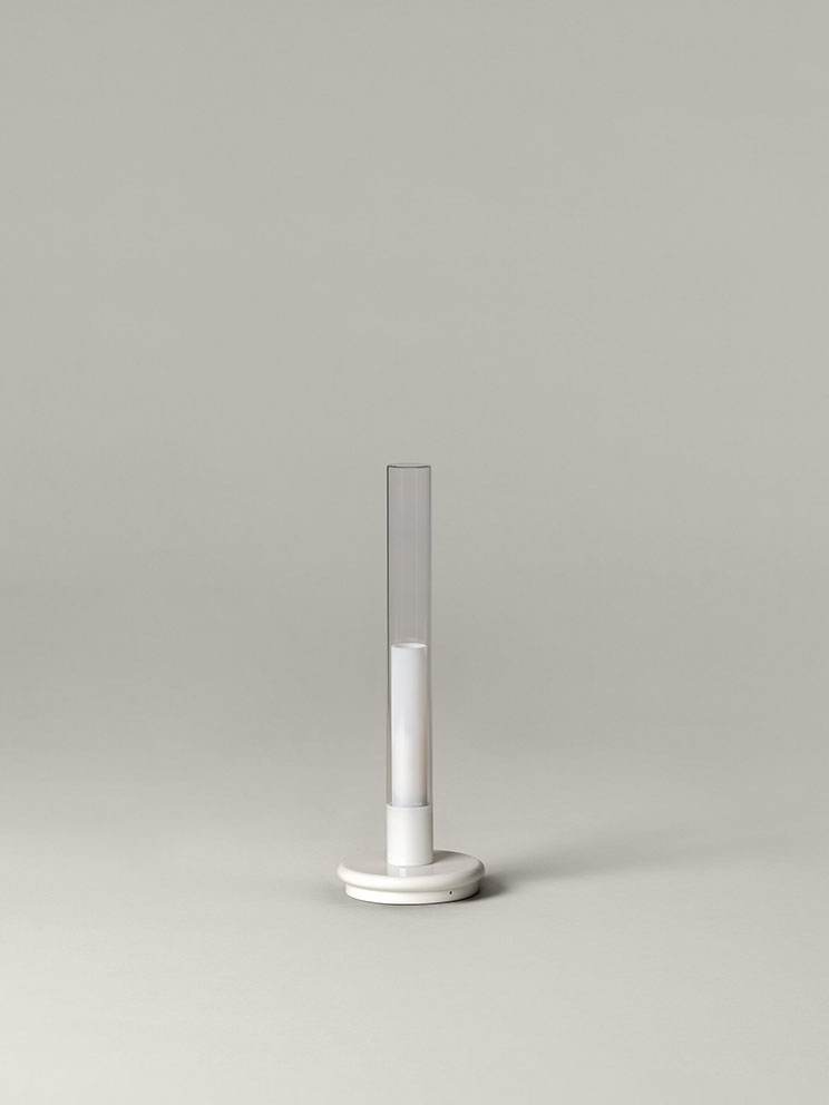 Santa & Cole Sylvestrina lampa bateryjna/lampka stołowa, błyszcząca biała – zaprojektowana przez Enrica Sòria i Jordiego Garcésa