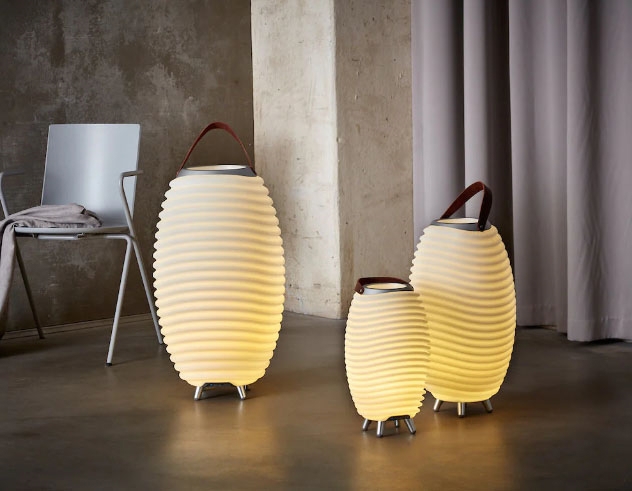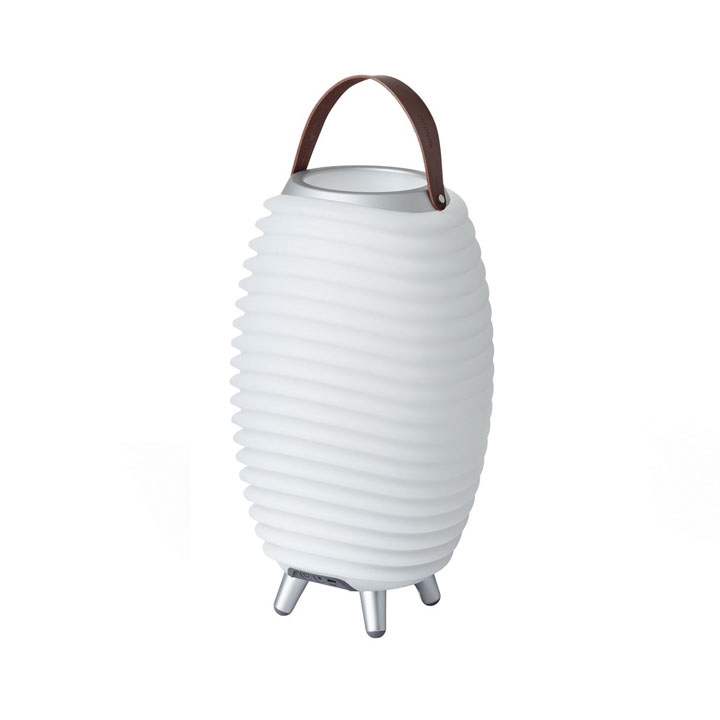 Kooduu Synergy S to innowacyjne połączenie lampy LED, głośnika i chłodziarki do wina. Lampa ma niezwykle sprytny design, który można zabrać wszędzie, ponieważ jest zasilana bateriami. Lampa Synergy emituje ciepłe światło, które tworzy przytulną atmosferę.