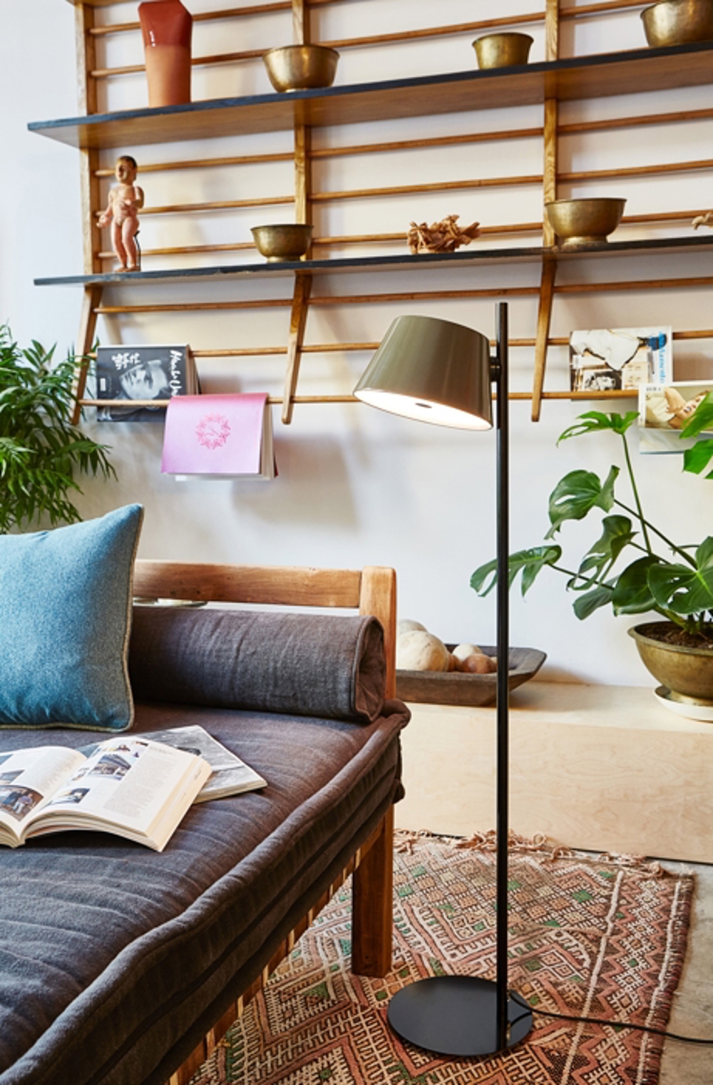Tam Tam P, czarna lampa podłogowa, jest częścią serii Tam Tam, która obejmuje lampy podłogowe i wiszące.