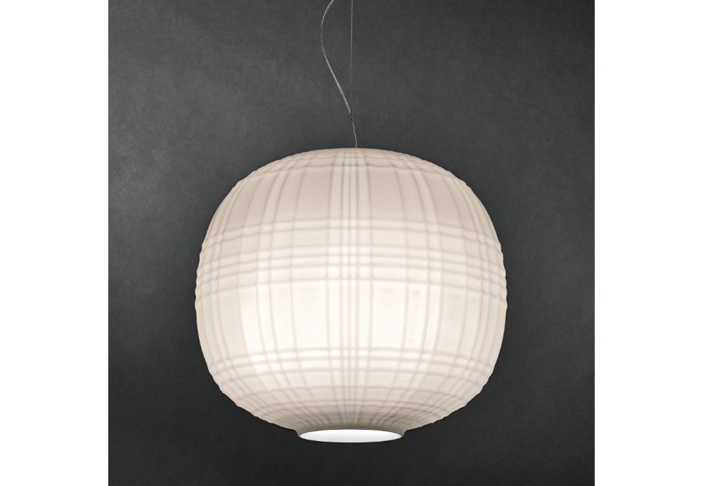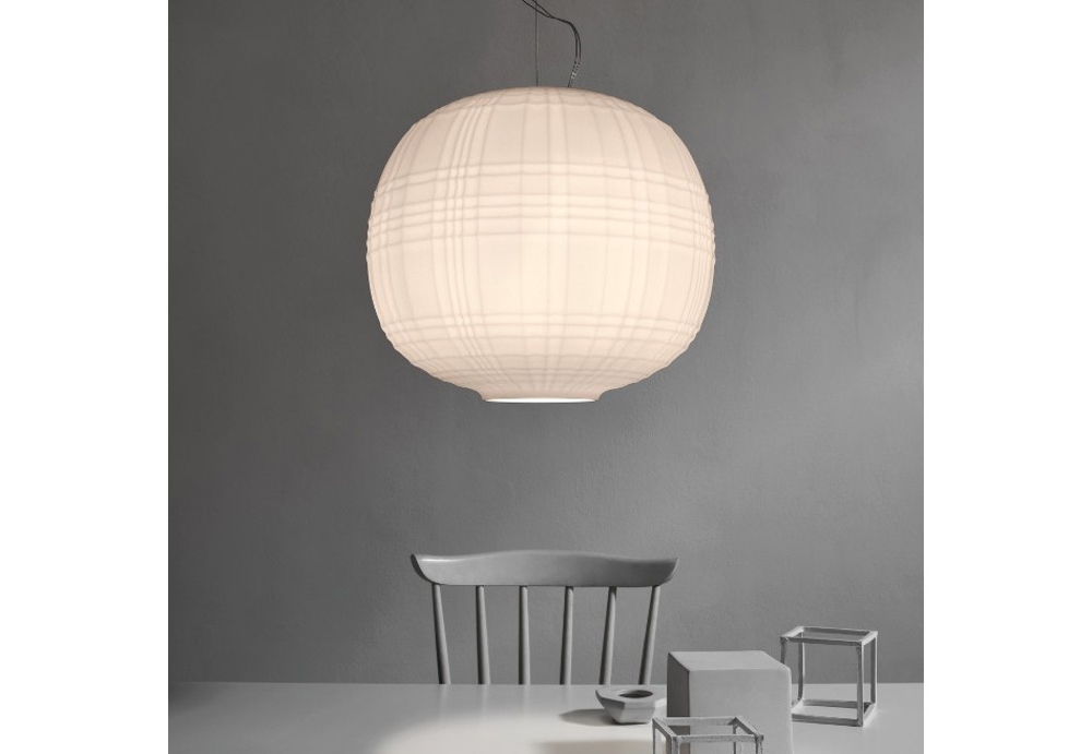 Klosz Tartan Sospensione wykonany jest z dmuchanego szkła z kratkowanym wzorem, który tworzy fascynujące oświetlenie.
