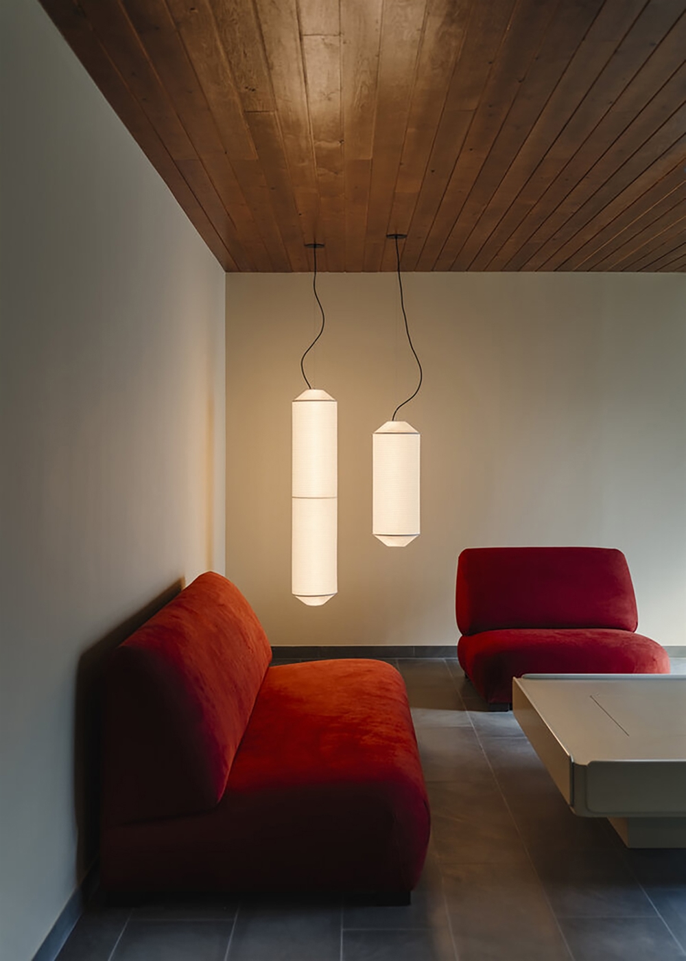 Tekió vertical P1 to pionowa lampa wisząca z kloszem z japońskiego ręcznie robionego papieru. Nazwa lampy pochodzi od japońskiego słowa "Tekip", które oznacza dostosowanie. Widać to również po naturalnym i stonowanym kolorze papierowego klosza, który sprawia, że lampa pasuje do wielu wnętrz.