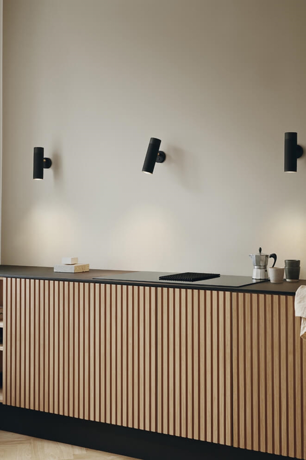 Standardowo kinkiet jest skonfigurowany jako 'hard-wired' do bezpośredniego montażu, ale przewody umożliwiają łatwą rekonfigurację na plug-in przy zakupie zestawu kinkietowego Thorup Copenhagen.