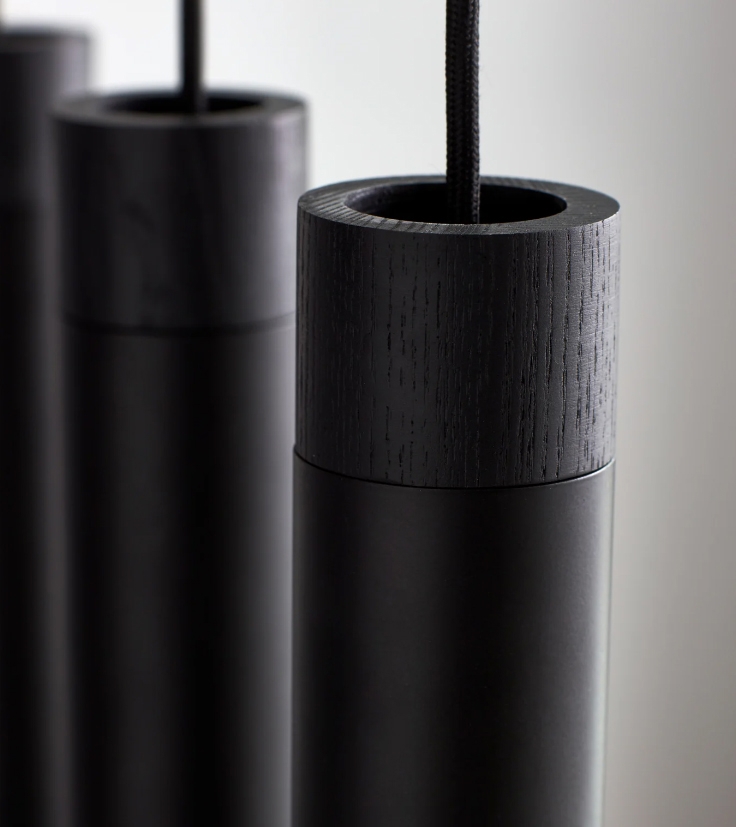 Tilo jest również dostępna jako pojedyncza lampa wisząca w różnych wykończeniach oraz jako 3 lampy zebrane w czarnej osłonie.