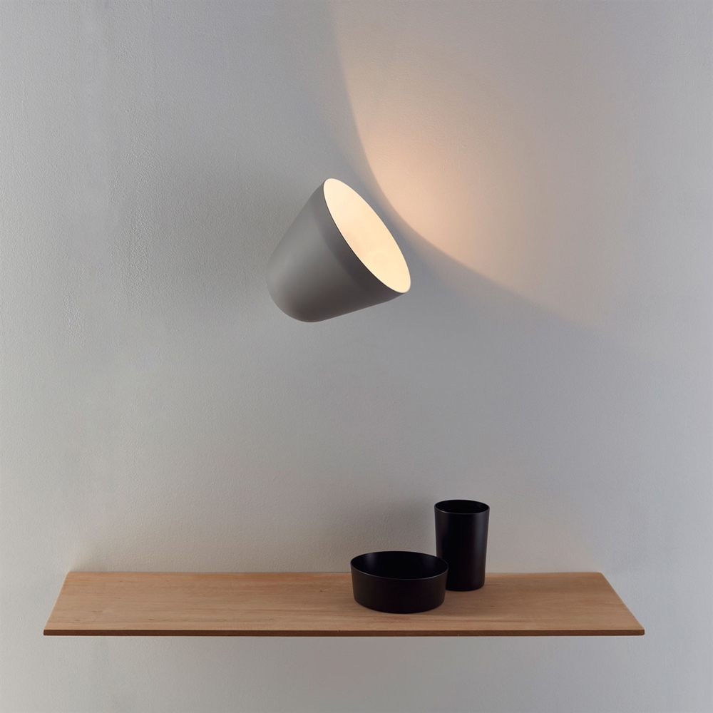 Tilt Short kinkiet to krótki kinkiet z obrotowym kloszem. Wykonany z aluminium z matowym wykończeniem, wewnątrz biały, co zapewnia optymalne odbicie światła.