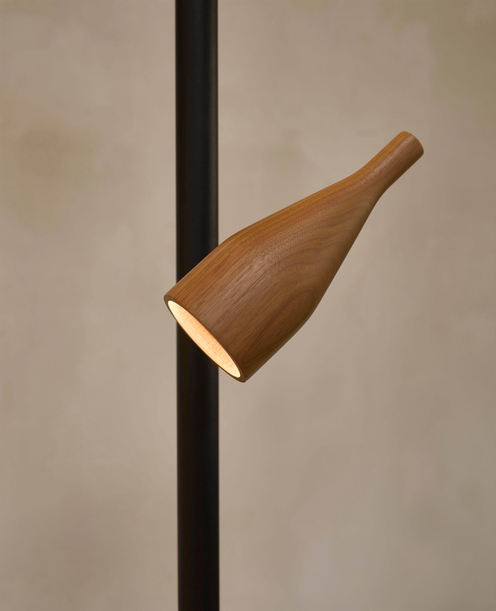 Timber Floor spot i uplight to część nowoczesnej lampy podłogowej Timber Floor. Oba źródła światła można przyciemniać oraz włączać i wyłączać niezależnie od siebie, a ruchomy spot zapewnia doskonałe światło do czytania.