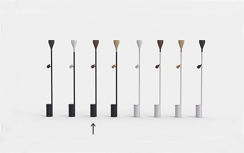 Timber Floor dostępna jest oprócz czarnego również w białym kolorze z spotem i uplightem w czterech różnych wariantach: dąb, orzech, bielone jesion lub czernione jesion.