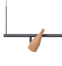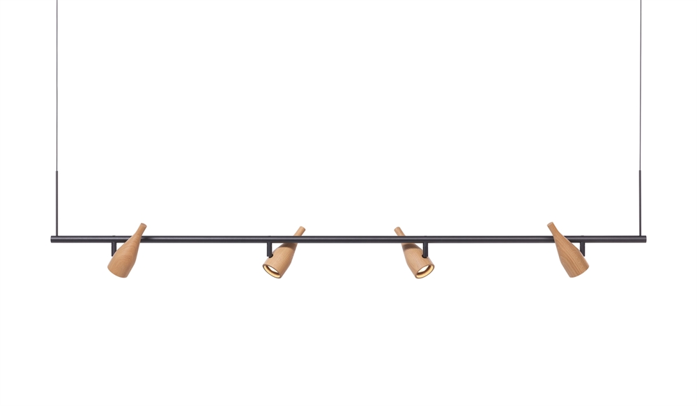 Timber Line 4 ma cztery ruchome reflektory. Lampa wisząca może być używana nad stołem jadalnym lub biurkiem, a także do oświetlenia szafy lub ściany.