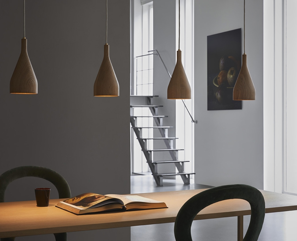 Timber to pendel wykonany z drewna, dostępny w wersjach z jesionu, dębu i orzecha. Specjalny lakier do drewna został nałożony na powierzchnię pendla, aby uwydatnić eleganckie słoje drewna, co nadaje piękny i naturalny wygląd w każdym pomieszczeniu. Świetnie prezentują się nad stołem jadalnym, stolikiem kawowym lub wyspą kuchenną, zarówno pojedynczo, jak i w połączeniu z innymi pendelami Timber.