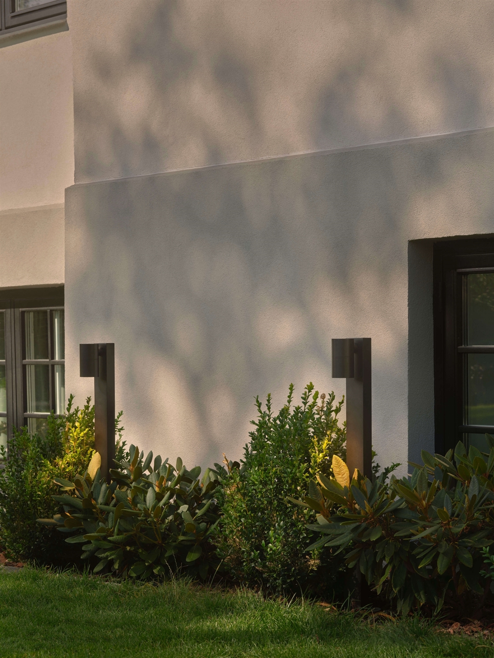 Lampa ogrodowa Tin dostępna jest w wysokości 50 cm lub 80 cm i dla łatwej instalacji w ziemi można ją połączyć z bazą Nordlux do lamp ogrodowych, którą należy zakupić osobno.