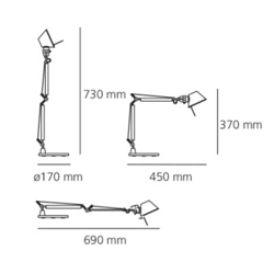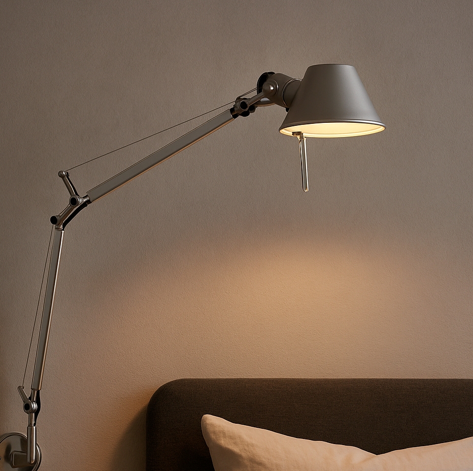 Tolomeo dostępne jest w wielu rozmiarach i dzięki swojej elastyczności jest idealnym wyborem zarówno jako lampa biurkowa, jak i lampa do czytania przy łóżku z regulacją wysokości.