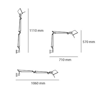 Tolomeo dostępny jest w wielu rozmiarach i dzięki swojej elastyczności jest idealnym wyborem zarówno jako lampa biurkowa, jak i lampka do czytania przy łóżku z regulacją wysokości.