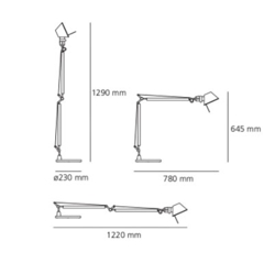 Tolomeo dostępny jest w wielu rozmiarach i dzięki swojej elastyczności jest idealnym wyborem zarówno jako lampa biurkowa, jak i lampa do czytania przy łóżku z regulacją wysokości.