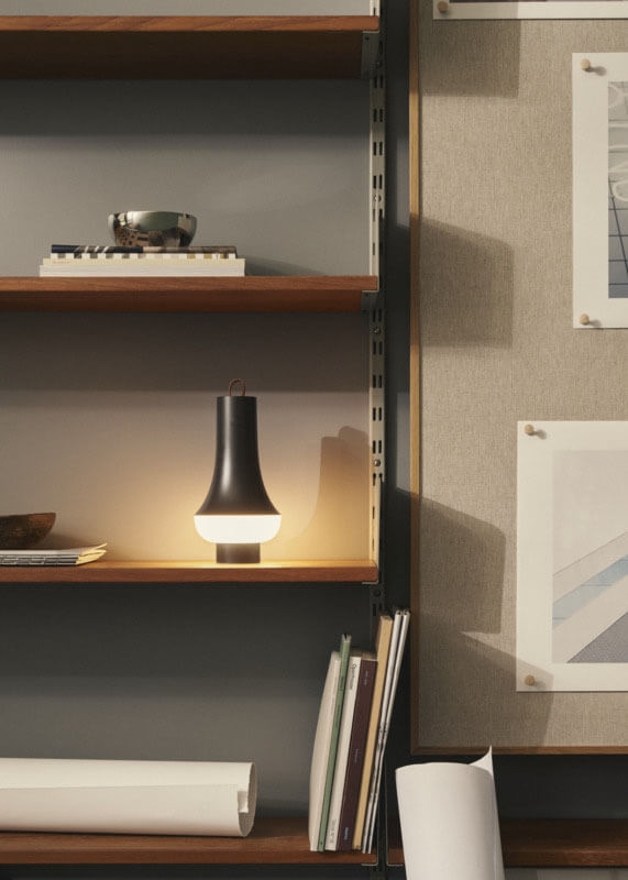 Lampa bateryjna Tomoshi Portable to przenośna lampa stołowa z miękkim, nieoślepiającym światłem, które daje piękne światło skierowane w dół i 360° światło otaczające.