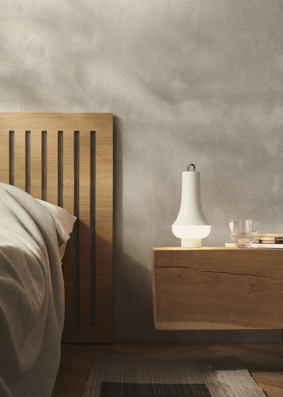 Lampa na baterie Tomoshi Portable to przenośna lampa stołowa z miękkim, nieoślepiającym światłem, które daje piękne światło skierowane w dół i 360° światło otaczające.