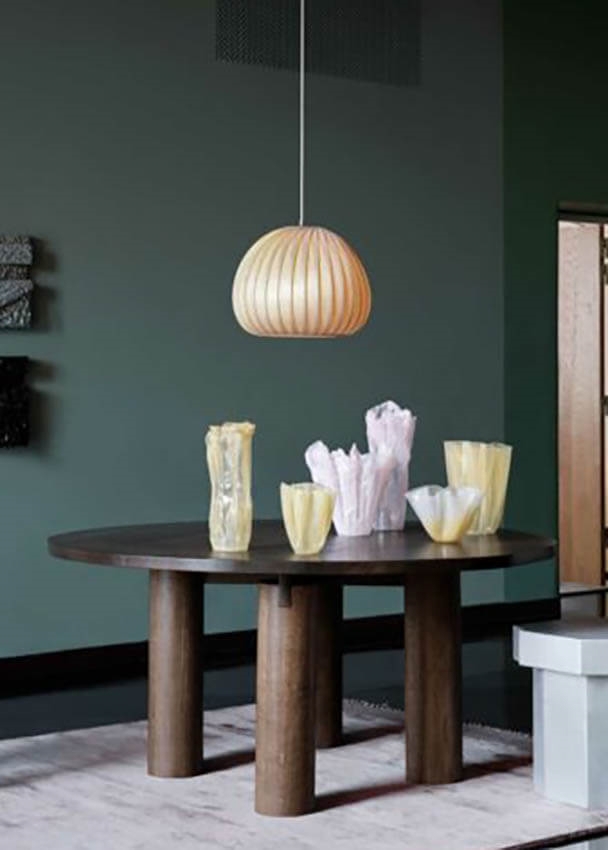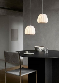 TR12 ma bardzo klasyczny wygląd, który dzięki swoim miękkim i okrągłym kształtom pięknie uzupełnia stół jadalny – zarówno samodzielnie, jak i w grupach kilku lamp wiszących. Lampa dostępna jest w dwóch różnych materiałach: brzoza i papier. Materiały klosza mają różne wyrazy i stopnie oświetlenia. Biały odcień zapewnia równomierne ogólne światło w przyjemnym białym tonie, podczas gdy lampy brzozowe dają bardziej miękkie i ciepłe światło.