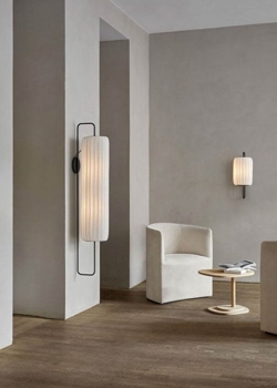 Piękny kinkiet ma nowoczesny i minimalistyczny wygląd, gdzie klosz rozprasza światło w sposób subtelny. Jest to więc zarówno przytulna, jak i funkcjonalna lampa, wykonana z doskonałego rzemiosła. Lampa wyróżnia się spośród innych lamp z serii Tom Rossau, ponieważ TR37 kinkiet ma bardziej graficzny wygląd. Czarna geometryczna stalowa rama otaczająca klosz zapewnia zrównoważony kontrast lampie.